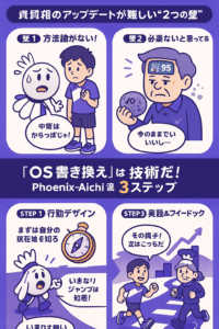 Phoenix-Aichiオンライン教室では、精神論で終わらせません。私たちは、価値観の変化を「技術」として捉え、具体的なステップで指導します。