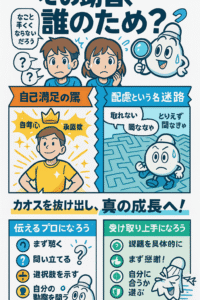 時に、アドバイスはする側の自尊心を満たすための道具となり、求める側は相手への配慮から本心を隠す。そんな「上達とはかけ離れた目的」が交錯し、現場がカオスと化している光景を、あなたも目にしたことがあるかもしれません。この記事では、アドバイスという行為の裏に潜む心理を解き明かし、真の成長へと繋がる道筋を探ります。