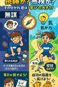 「もっと挑戦しろ!」と言われたかと思えば、「無謀なことはするな」と注意される。スポーツや学習の場で、この二つの言葉に板挟みになった経験はありませんか?一見、矛盾しているように聞こえる「挑戦」と「無謀」。この二つを分ける決定的な違いは、一体どこにあるのでしょうか。今回のレポートでは、その本質を解き明かし、あなたの一歩を確実な成長へと繋げるための格言をお届けします。