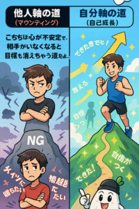 他人と比較して得る安心感は一瞬で消えますが、自分自身の成長がもたらす自信は、一生あなたの支えとなります。