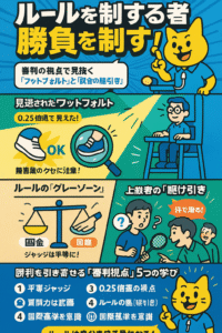 ルールを深く知ることは、技術練習と同じくらい勝敗に直結する。 審判の視点を理解することで、相手の癖を見抜き、不正なプレーに冷静に対処し、さらには試合の流れを合法的にコントロールすることさえ可能になる。