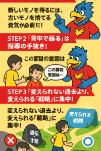 この日の教室は、前回の「最高の師は苦労人という真実」というテーマの振り返りから始まりました。すぐにできてしまう天才は「なぜできないか」が分からないため、指導者には向かない。むしろ、なかなかできなかったが、紆余曲折を経てやっとできるようになった人こそ、最高の指導者になり得るとコーチは語ります。