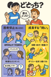 今回の教室で最も衝撃的だったのは、「ポリシーのない親」の話と「防衛費」の話が、根底で繋がっているという事実です。一見まったく無関係な「子育て」と「安全保障」が、「自分の頭で考えず、責任を他者に押し付ける」という一点で結ばれています。