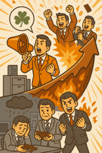 「いいか、売上の15%が消える。普通なら目標未達でも『仕方ない』と同情される状況だ。会社も株主も、誰も俺たちが達成できるなんて思っていない。こんなリスクゼロの状況で、もし達成してみろ。『あいつらマジですげぇ!』って伝説になるぞ!」