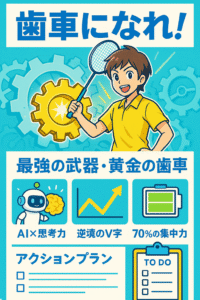 「歯車」とは「代替不可能な戦力」のこと。 自分のやりたいことより、チームが必要としていることを優先できる人こそが、結果として最も成長し、信頼される存在になる [cite: 1][cite_start]。行動の意味や意義を問う前に、まずは動き出せ [cite: 1]。