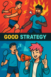- バドミントン: 決めにいくスマッシュを1本我慢し、あえて相手が「簡単に取れるが、攻めにくい」緩い球を配球する。
