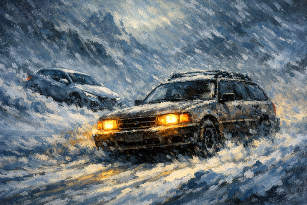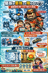 余計な電子制御が介入せず、機械的に4輪を回し続けるシンプルな「シンメトリカルAWD」が、雪を力ずくで掻き分けました。