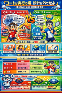 | コート内の行動 | 考えながら打つ・迷いながら動く | ただ「実行」するだけ |