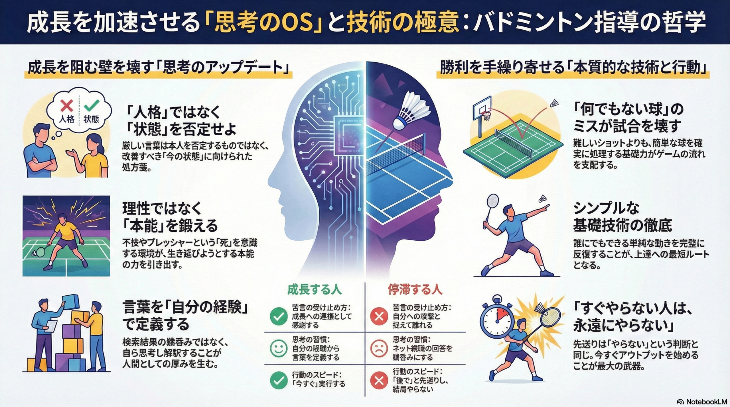 今回の濃密な講義から、バドミントンにも人生にも活きる普遍的な学びを5つにまとめました。