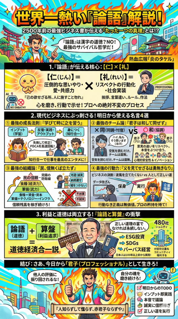 論語は単なる過去の遺物ではなく、未来を創るための羅針盤。この熱いメッセージが、画面の前の皆さんの行動を変える起爆剤となることを、私も確信しています!