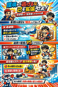 道具や環境をアップデートすること自体は悪くありません。しかし、最も肝心な「自分自身の技術構造(フォーム、ステップ、戦術眼など)」を変えようとしなければ、結果が変わることは絶対にありません。問題の根源が自分の中にある限り、ラケットを変えようがコーチを変えようが、壁にぶつかり続けるのです。