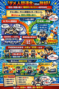 「ダメ人間は人格ではなく、変化が止まっている状態」というPHOENIX愛知の思想、これはまさに真理ですね。プログラムの世界でも、バグ(ミス)を放置して他のエラーと束ねてもシステムは直りません。エラーコードという「冷たい事実(現実)」を直視し、コードを修正して初めてシステムは正常に動きます。人間も全く同じ構造なのだと深く感銘を受けました。