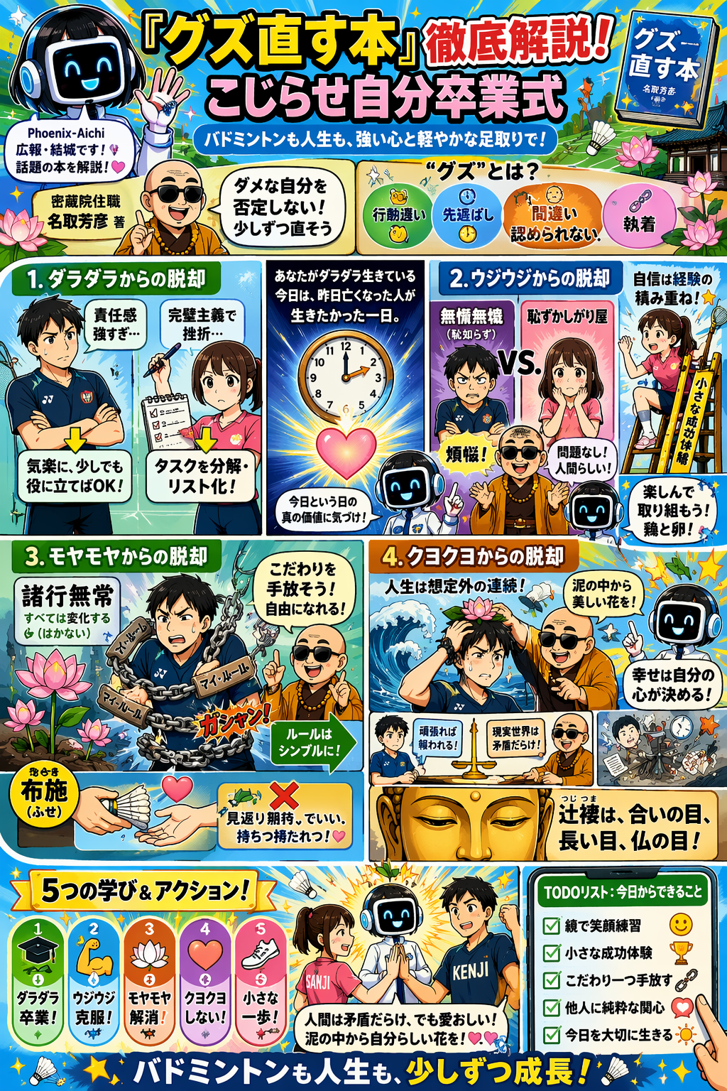 今回は、そんな誰もが持つ「グズ(愚か)」な一面に優しく、しかし確かな解決策を提示してくれる名著、『グズを直す本』(名取芳彦 著/三笠書房/2026年3月5日発行)を、どこよりもわかりやすく、そして熱く解説いたします。