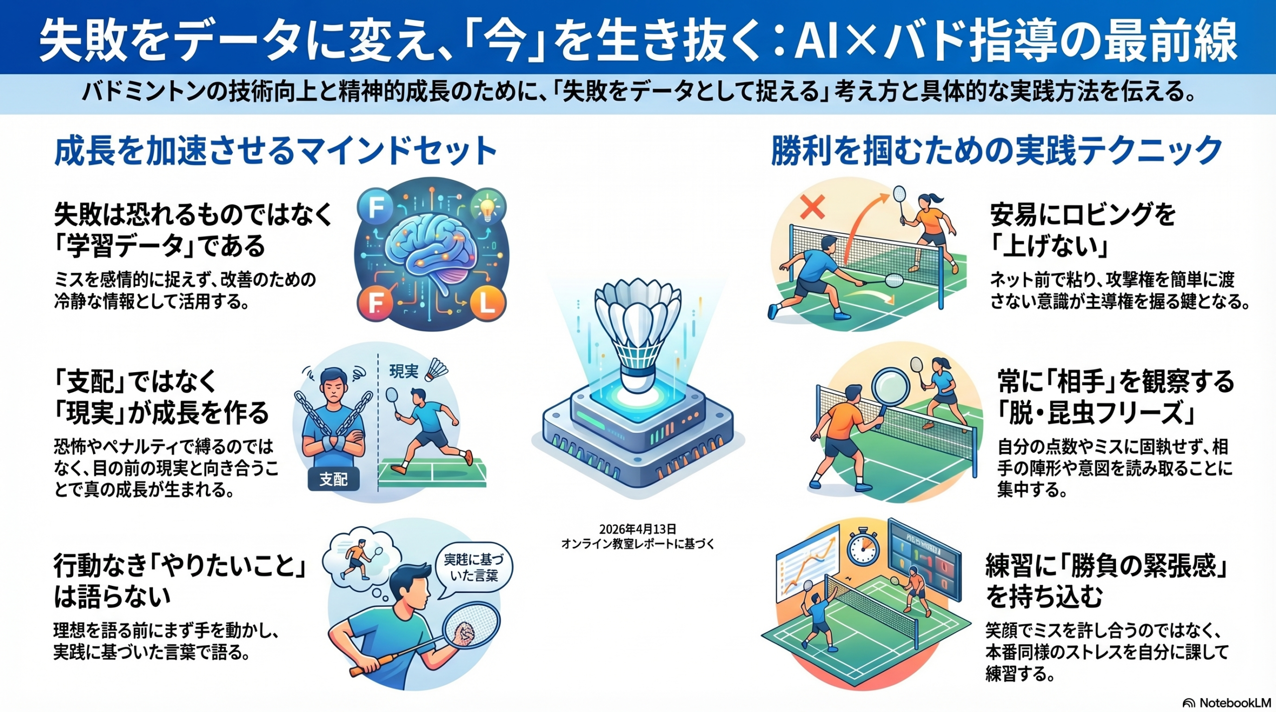 2026年4月13日オンライン教室レポート:失敗をデータに変え、「今」を行動する!AI×バド指導の最前線