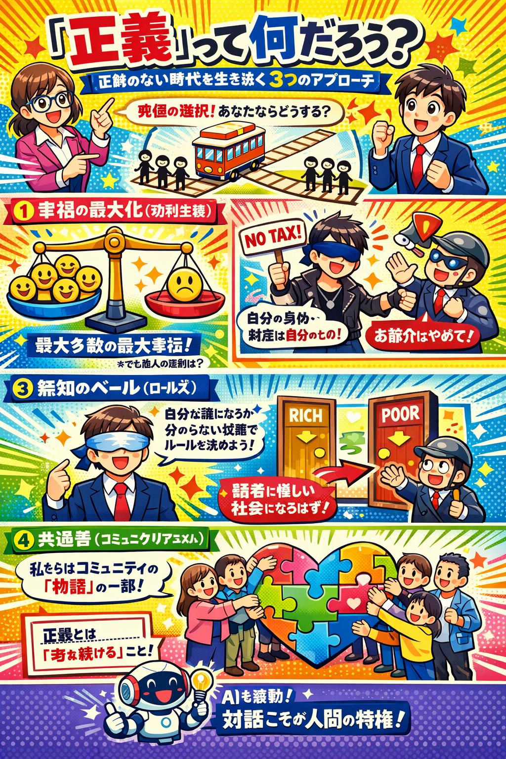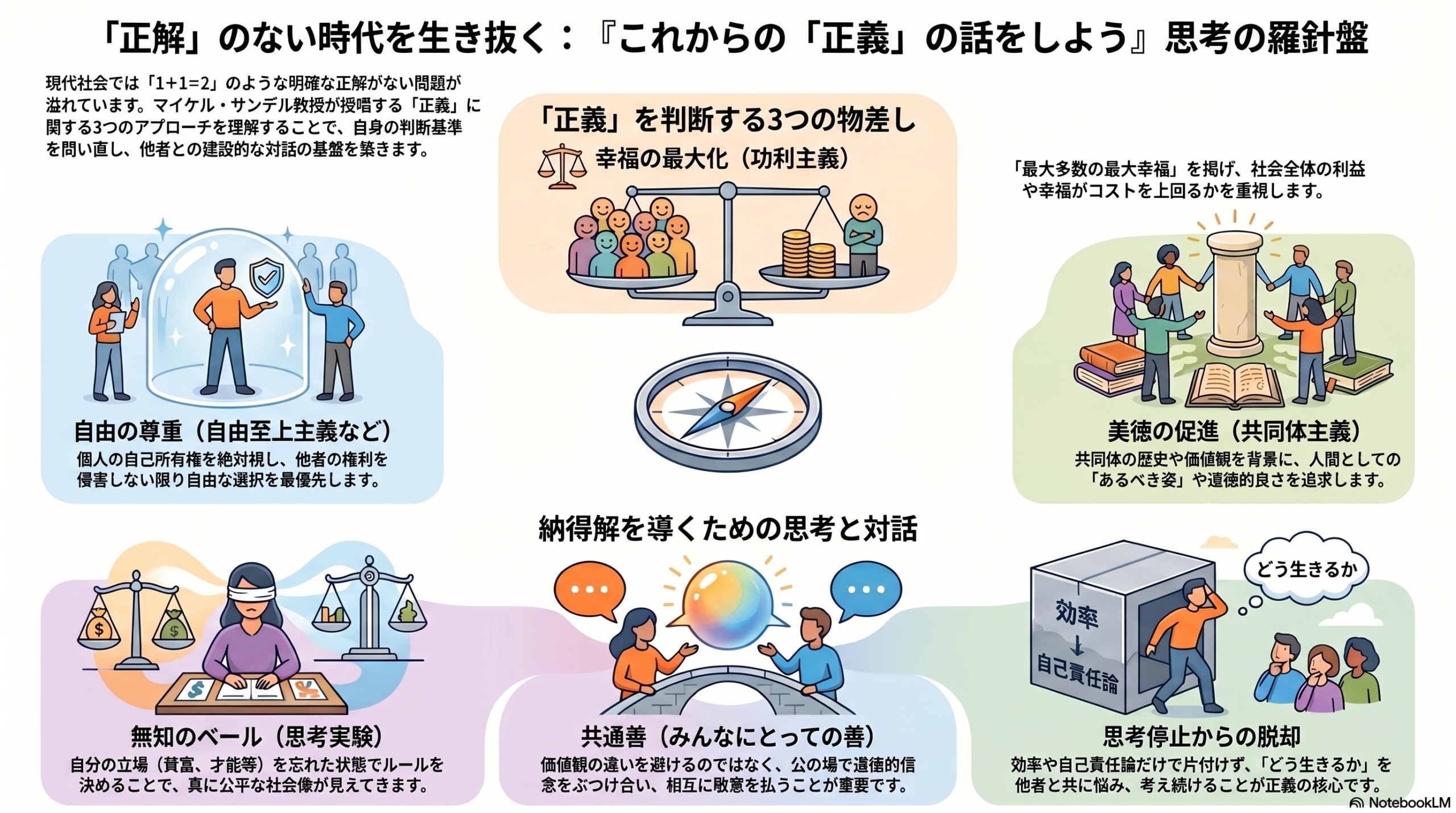 AIが進化し、あらゆる作業が自動化される現代において、唯一人間だけに残された崇高な営み。それこそが、「他者と対話し、悩み、より良き社会のための『正義』を追求し続けること」なのです。
