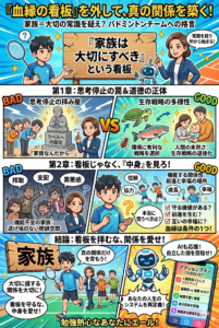 「生存戦略の道徳化」。この視点は、多くの人を無用な罪悪感から解放する究極の刃(ブレード)です。「家族なんだから」というラベルに苦しむ必要はありません。大切なのは、あなたの幸福、成長、そして前進を阻害しない「真の関係性」を自らの手で選び取る勇気です。