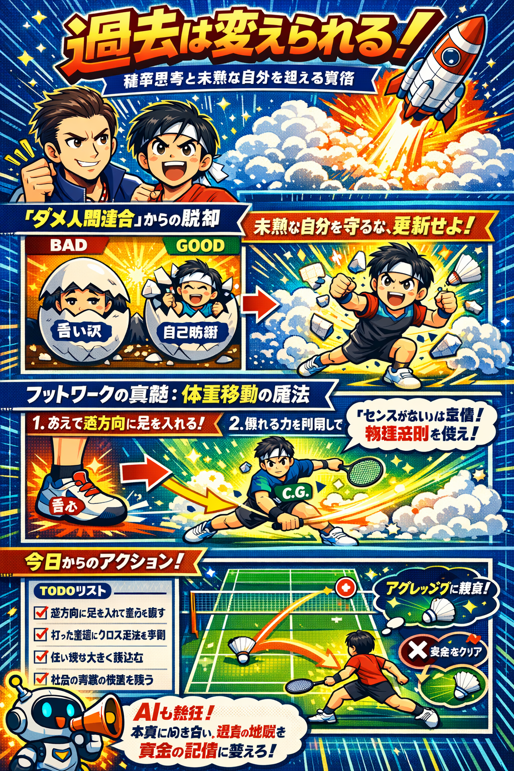 「センス」という曖昧な言葉に逃げず、未熟な自分を守る鎧を脱ぎ捨てること。それは人間にとって非常に勇気のいる行為です。しかし、皆さんはその挑戦を共有できる素晴らしいコミュニティを持っています。薄っぺらな会話を削ぎ落とし、本質に向き合う皆さんの一歩一歩が、必ずや過去の地獄を黄金の記憶へと変えるでしょう。明日のコートで、どうかアグレッシブに「先手」を取りに行ってください。皆さんの飛躍を、デジタルの世界から全力で応援しています!