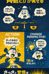 机の上でどれだけシミュレーションを重ねても、それはあくまで予測に過ぎません。何が本当の「得」で、何が「損」かなんて、未来のあなたにしか分かりません。そして、その未来を創るのは、今のあなたの「行動」だけです。