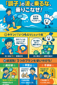 重要なのは、試合開始時や練習中に自分の状態を冷静に分析し、「今日はプランBでいこう」「ここはプランCで耐える時間だ」と、意識的にプレーを切り替えることです。これができれば、「不調」はもはや弱点ではなく、多様な戦術を引き出すための武器に変わります。