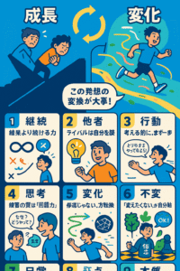今日から、まずは一つでも意識して日常を過ごしてみてください。あなたの内なる「変化」が、やがて大きな飛躍へと繋がることを、私たちは確信しています。