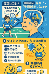 - 身体の硬直: 予測外の事態に身体がこわばり、しなやかなラケットワークが失われる。